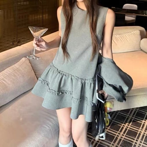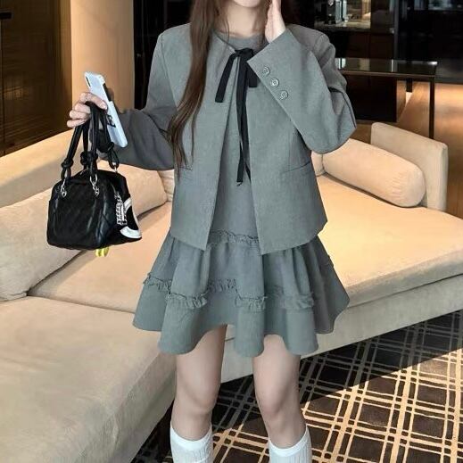 ショート丈ジャケットとフリルワンピースの組み合わせがクラシカルな印象♡