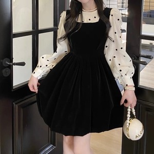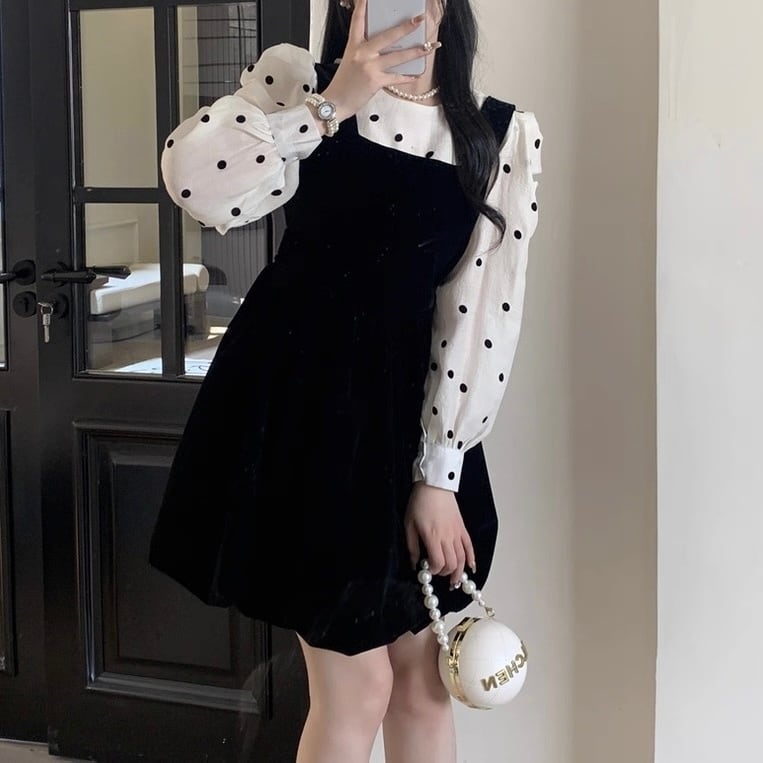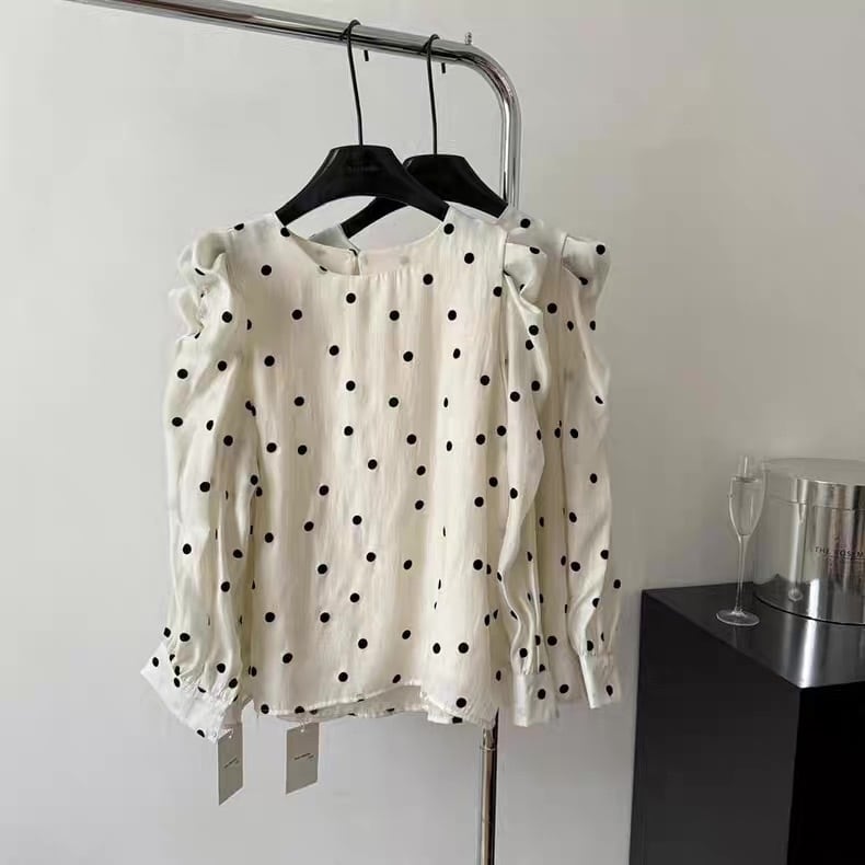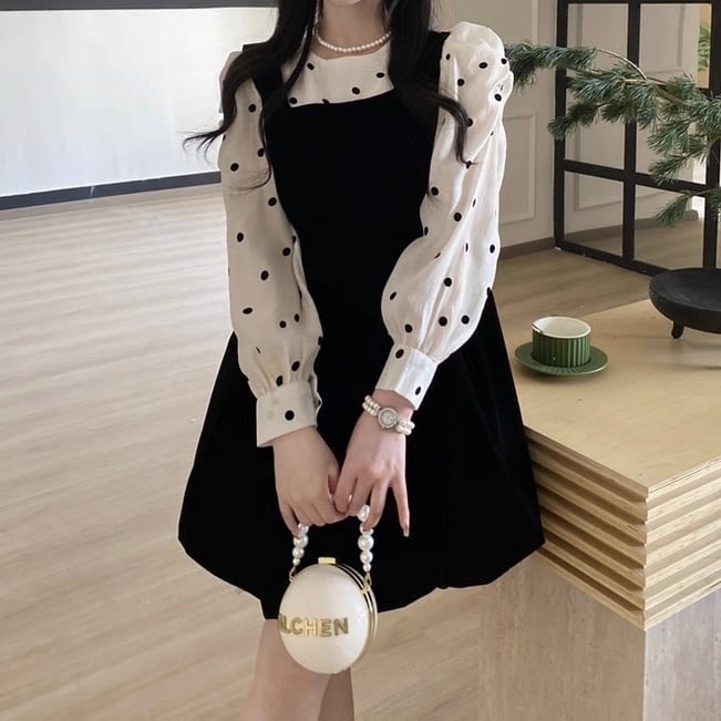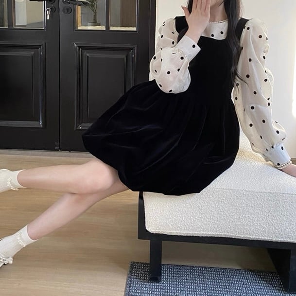 ドットブラウス×ベロア風ジャンスカの上品なセットアップ♡