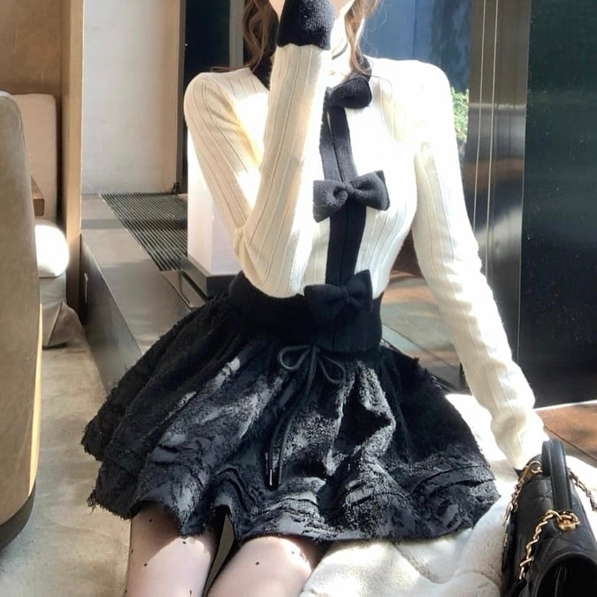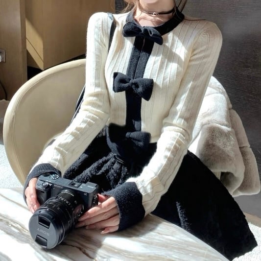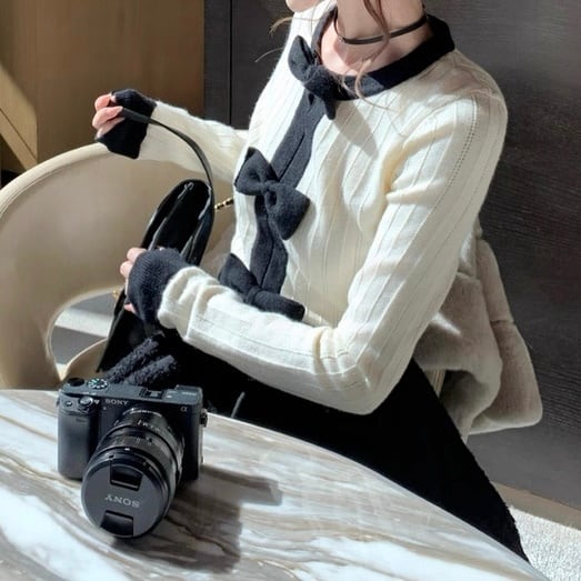 【一枚でお嬢様ムード】バイカラーリボントップス C254