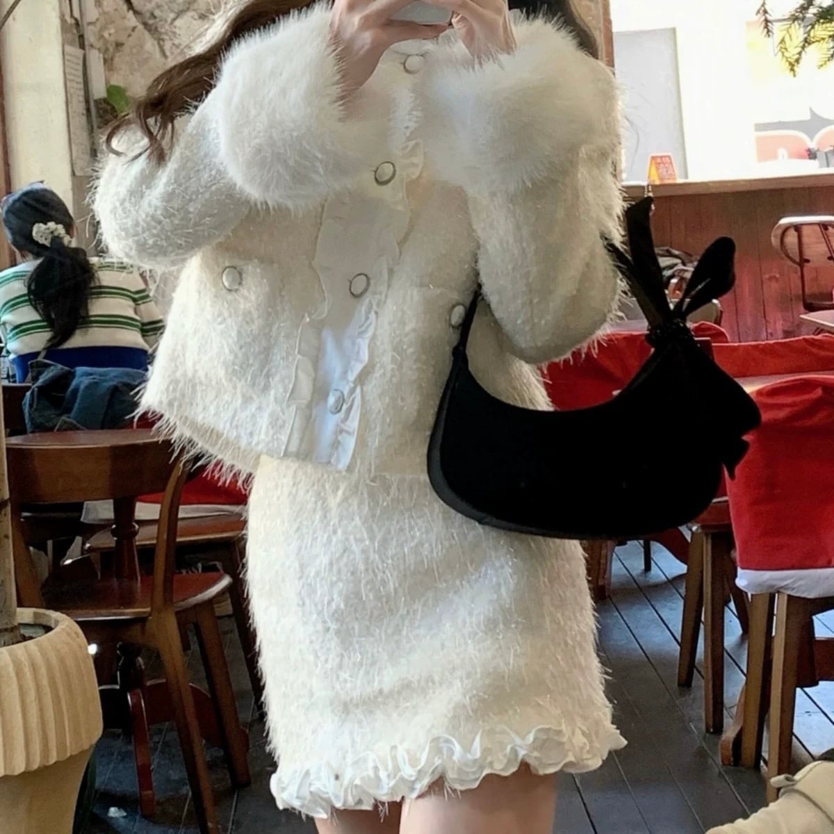 ふわもこ素材とフリルディテールが愛らしいセットアップ♡
