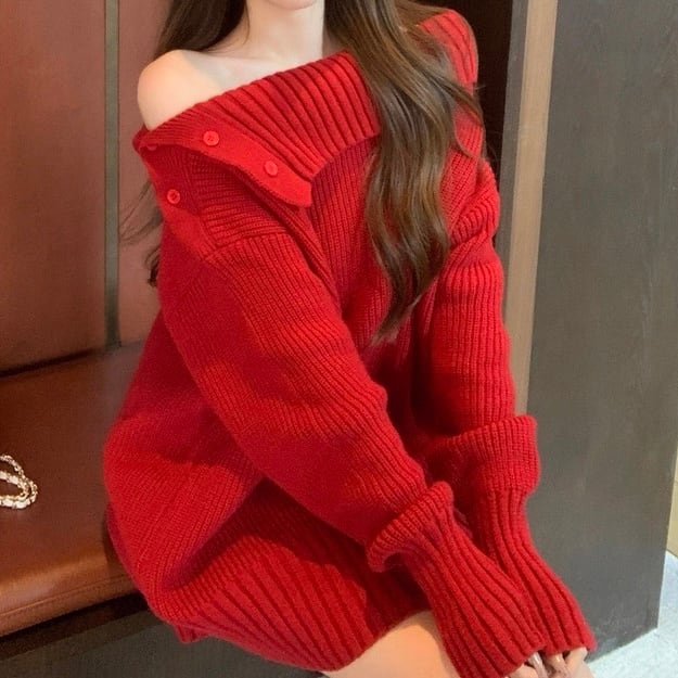 【ゆるっと可愛い抜け感シルエット】スウィートオフショルニット C261