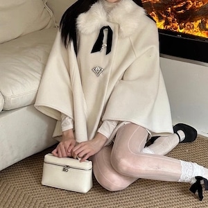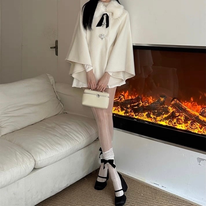 ふんわりとしたファーとビジューが煌めく、上品ガーリーなケープコート♡