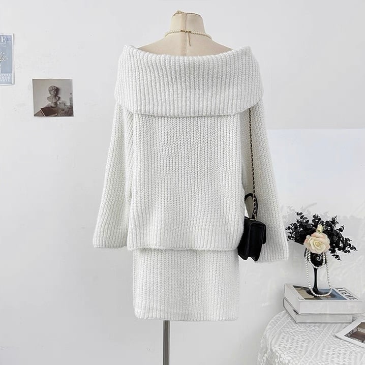 ふんわりとしたニット素材が心地よい、ガーリーなセットアップ♡