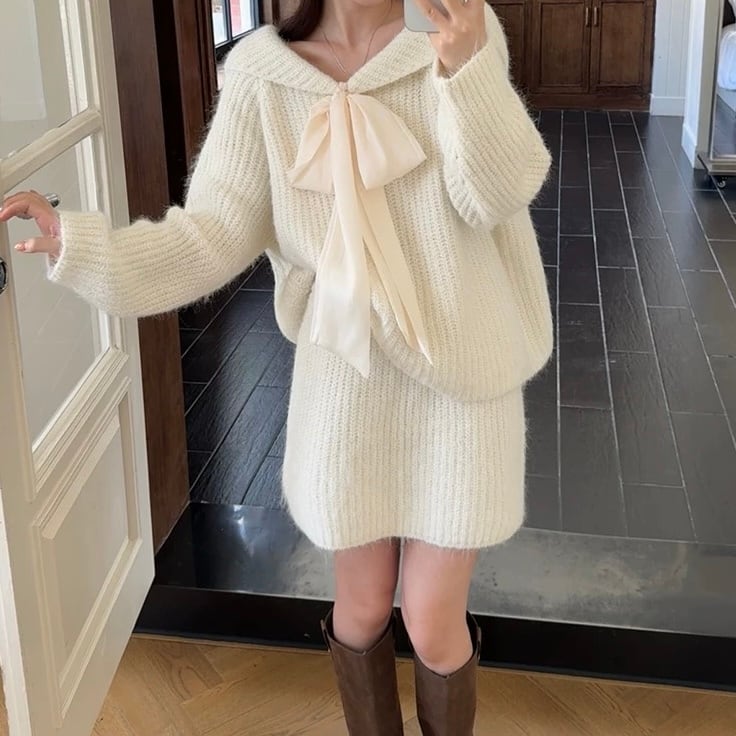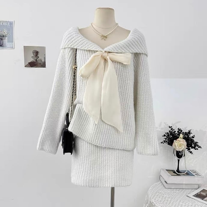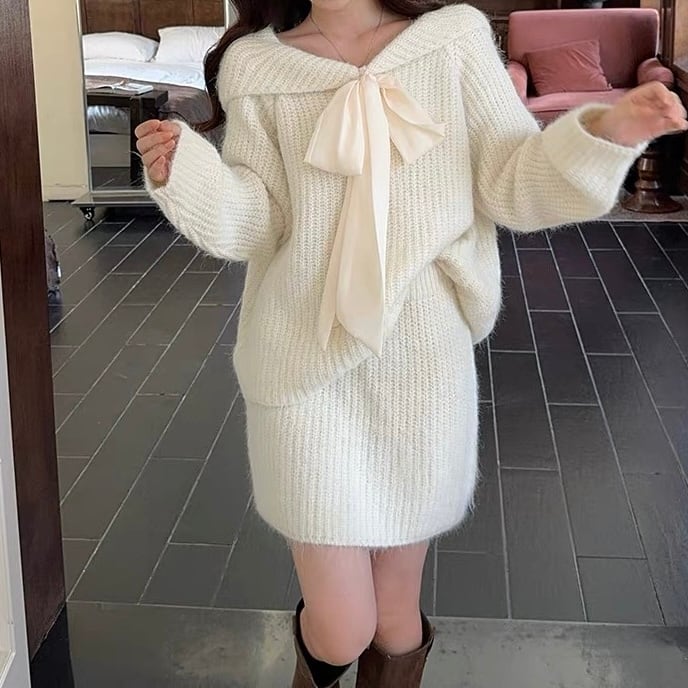 【着るだけで愛されシルエット】メルシーニットリボンセット C264