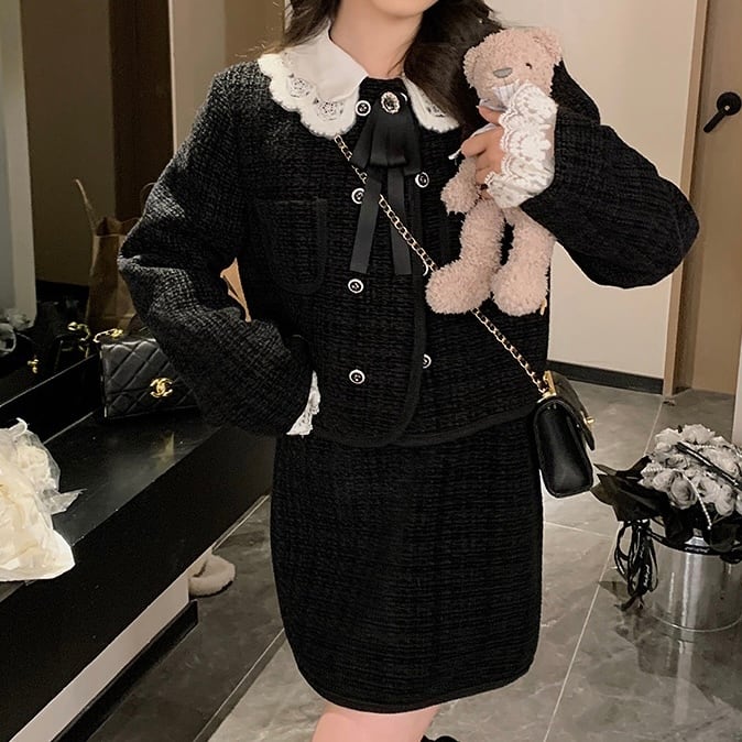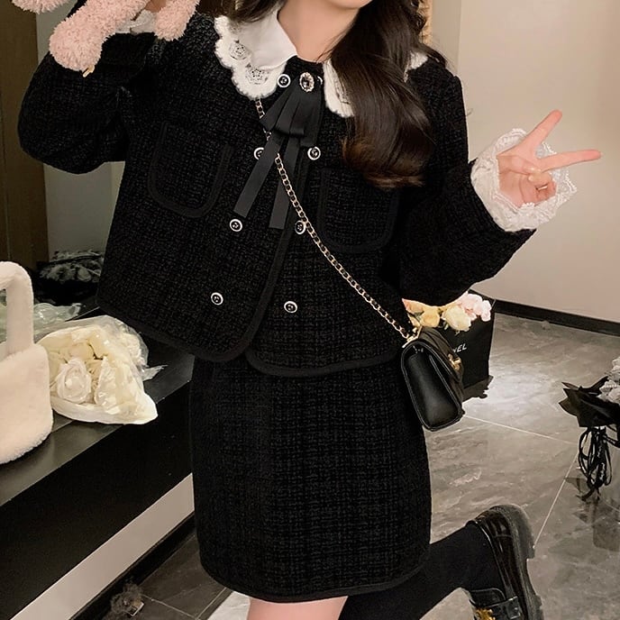セット内容はアウターとスカートの2点セットで、別々でも着回しが可能です。