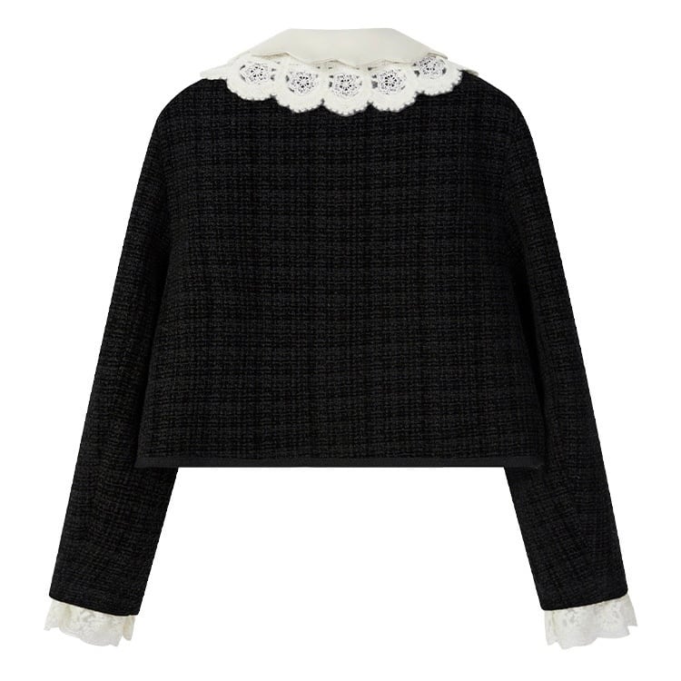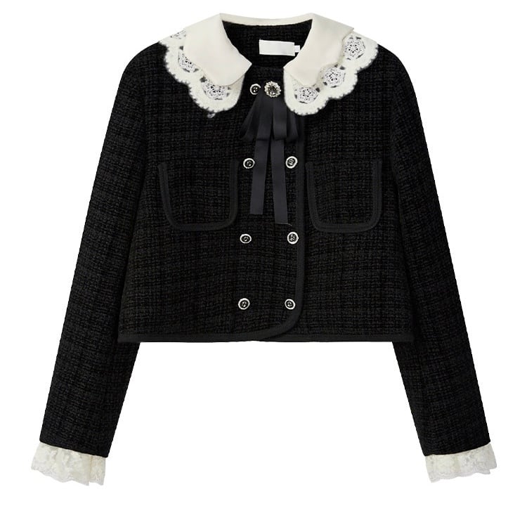 上品なレースと襟のダブル襟が特徴で、可愛い雰囲気を演出してくれます。
