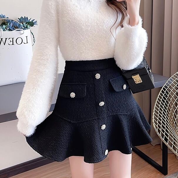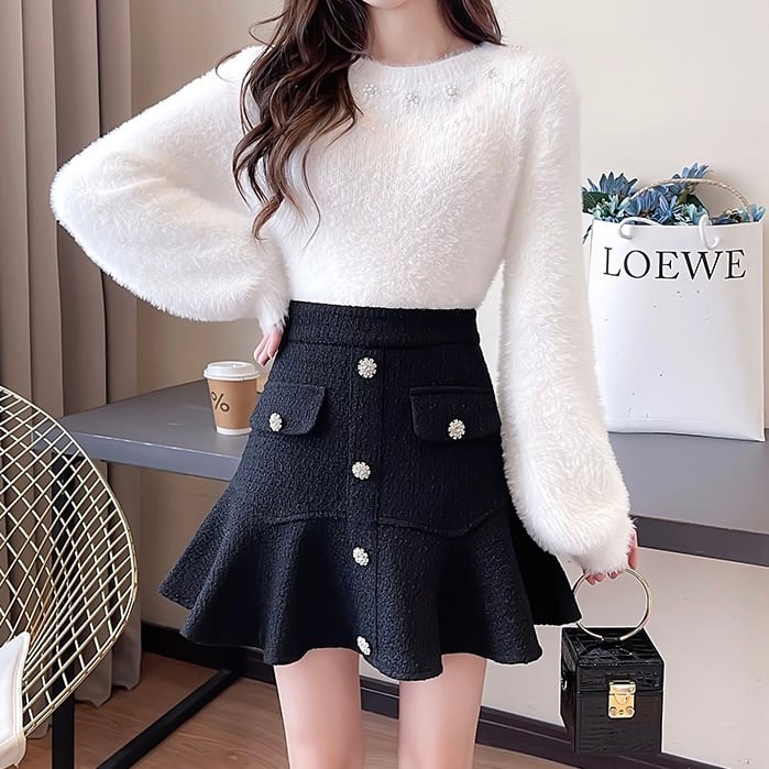 マーメイドシルエットで魅せる、ツイード素材のミニスカート♡