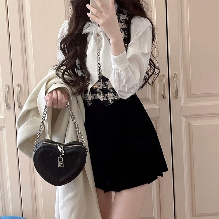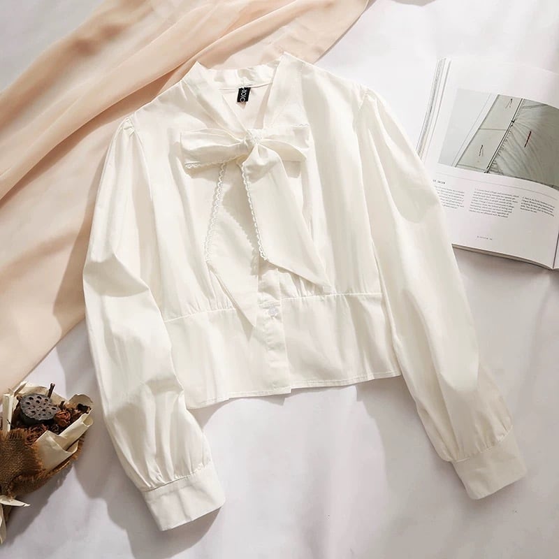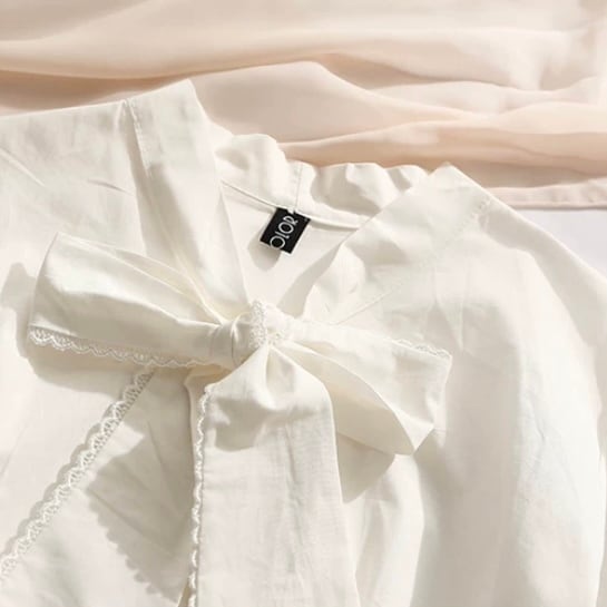 さらに、リボンブラウスとの組み合わせがエレガントな雰囲気を醸し出します♡