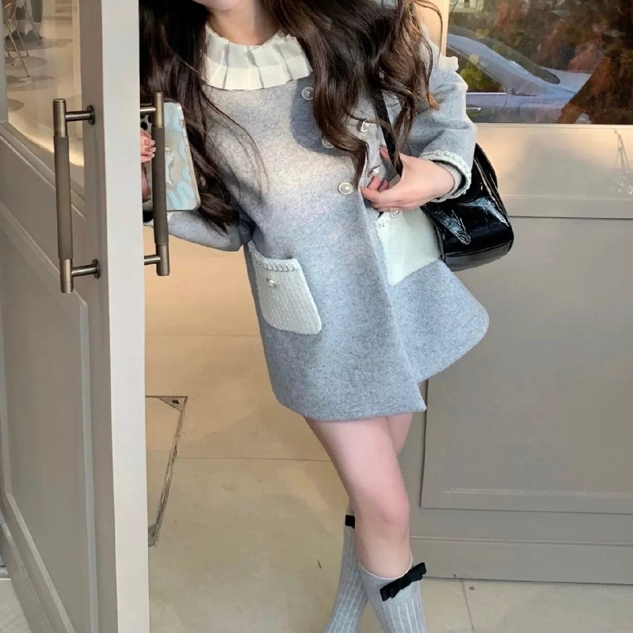 可愛らしさとシックさを兼ね備えたダブルボタンのコート。
