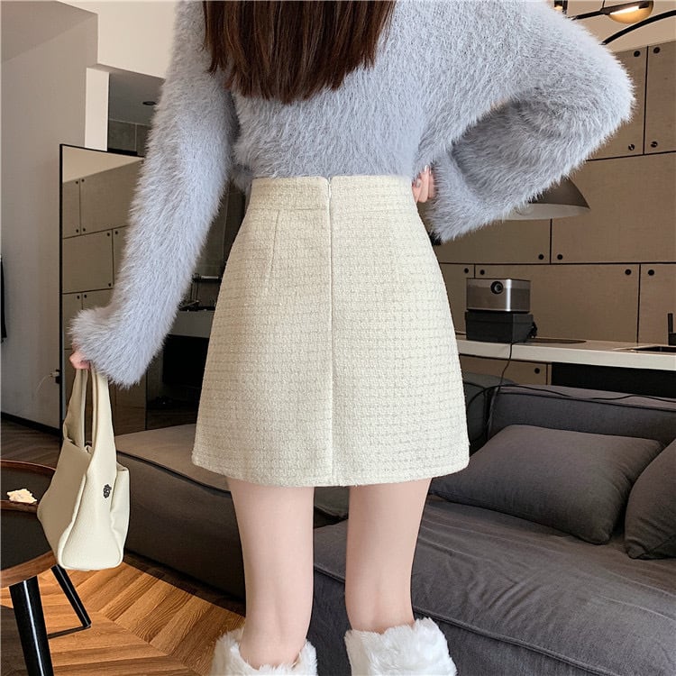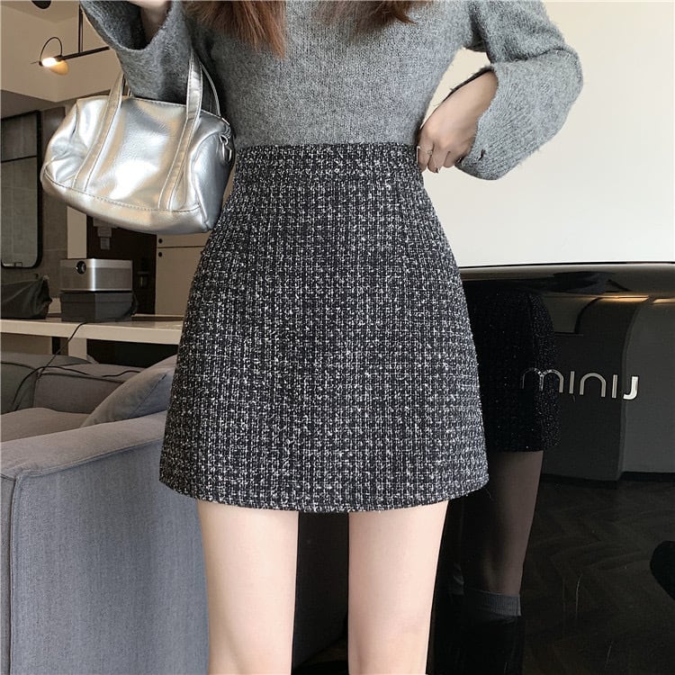 上品さと女性らしさを兼ね備えた上品ツイードミニスカート。