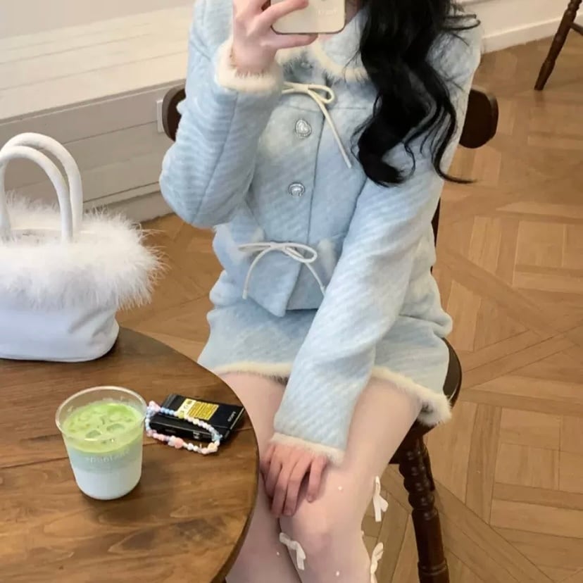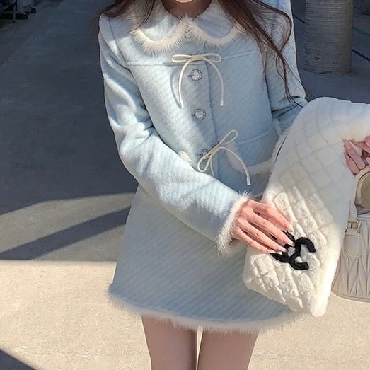 襟元や袖、裾にあしらわれたファーが華やかさを演出し、ハートボタンやリボンが可愛らしさを引き立てる特別なアイテムです♡
