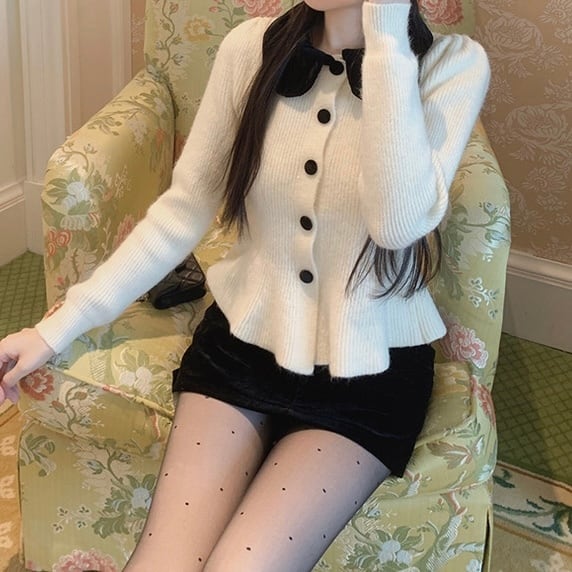 可愛らしいくるみボタンがアクセントのペプラムトップス♡