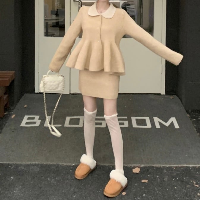 可愛らしくも上品なファンシーラウンドプリーツセットアップ。