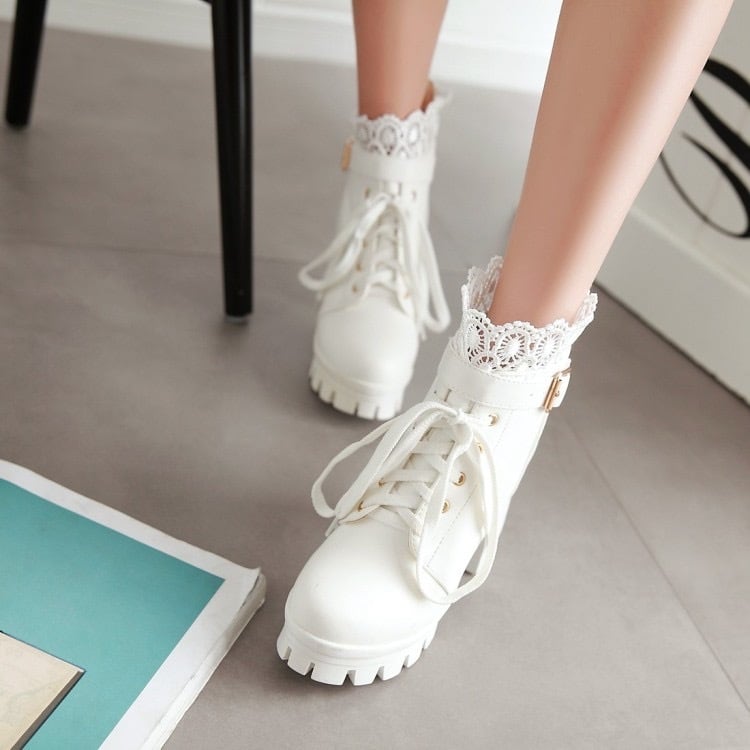 フロント編み上げリボンショートブーツ C125