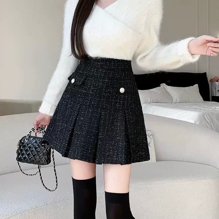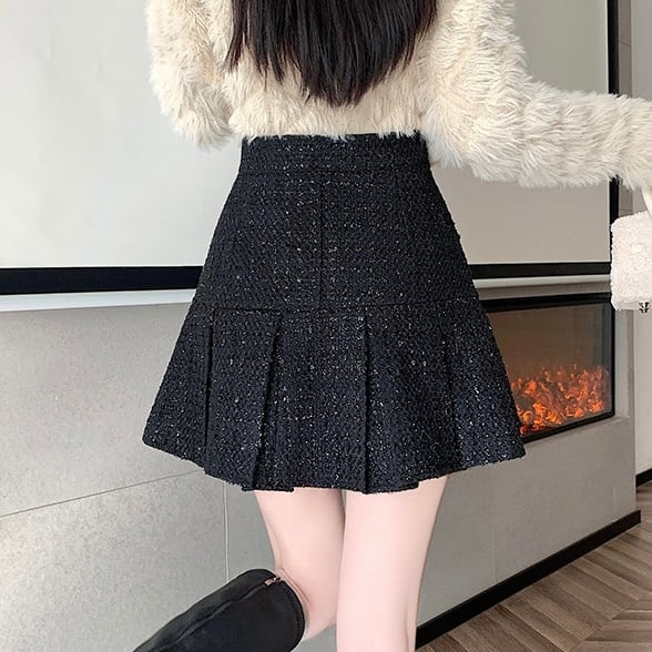 ツイード素材にプリーツデザインが施され、可愛いらしいシルエットを演出します♡