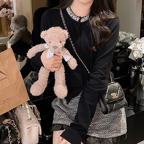 可愛らしさと華やかさを感じるビジューネックカーディガン♡