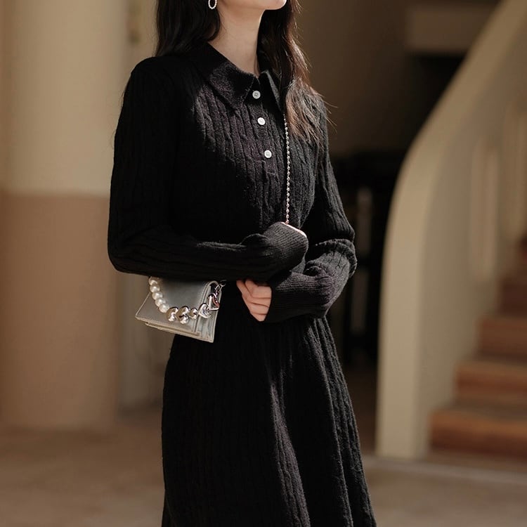 ニット素材が体を包み込み、寒い季節でも快適に着用できる一着です♪