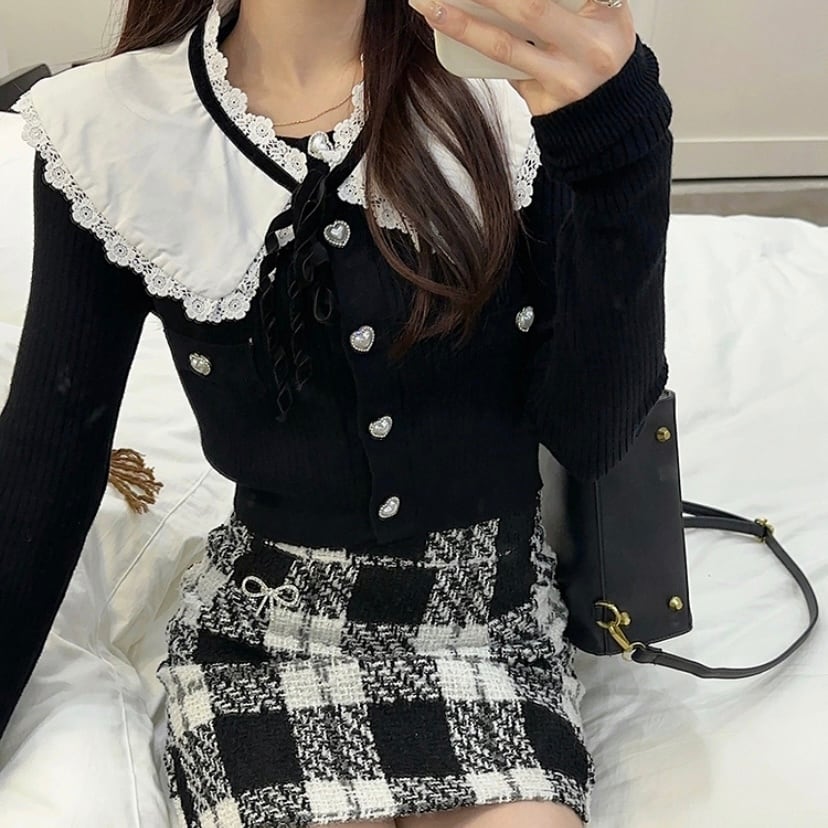 ハートボタンとビッグカラーが特徴のカーディガンは、襟を取り外すこともでき、様々なスタイルを楽しむことができる一着です♪